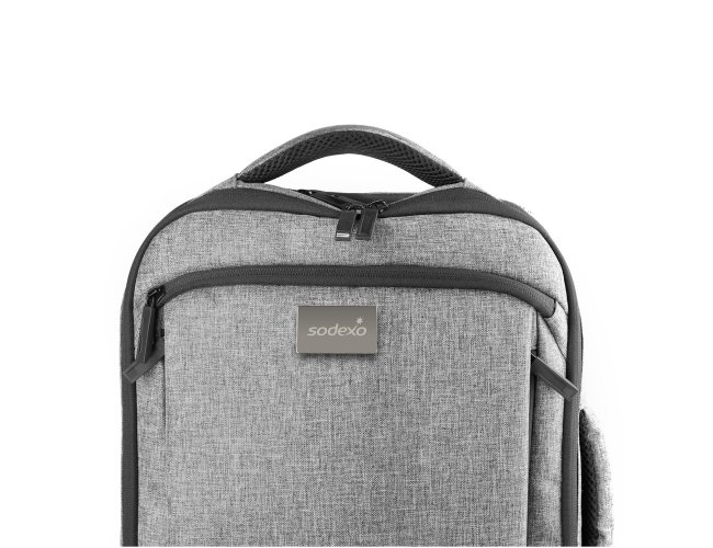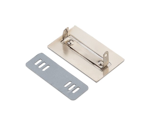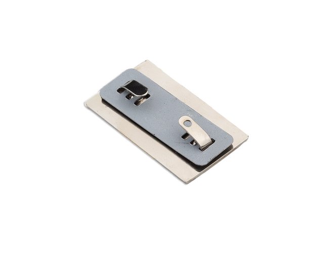 Placa em inox medindo 5x3cm, exclusiva para fixação em mochilas e malas, ideal para gravação a laser. Possui travas para fixação.